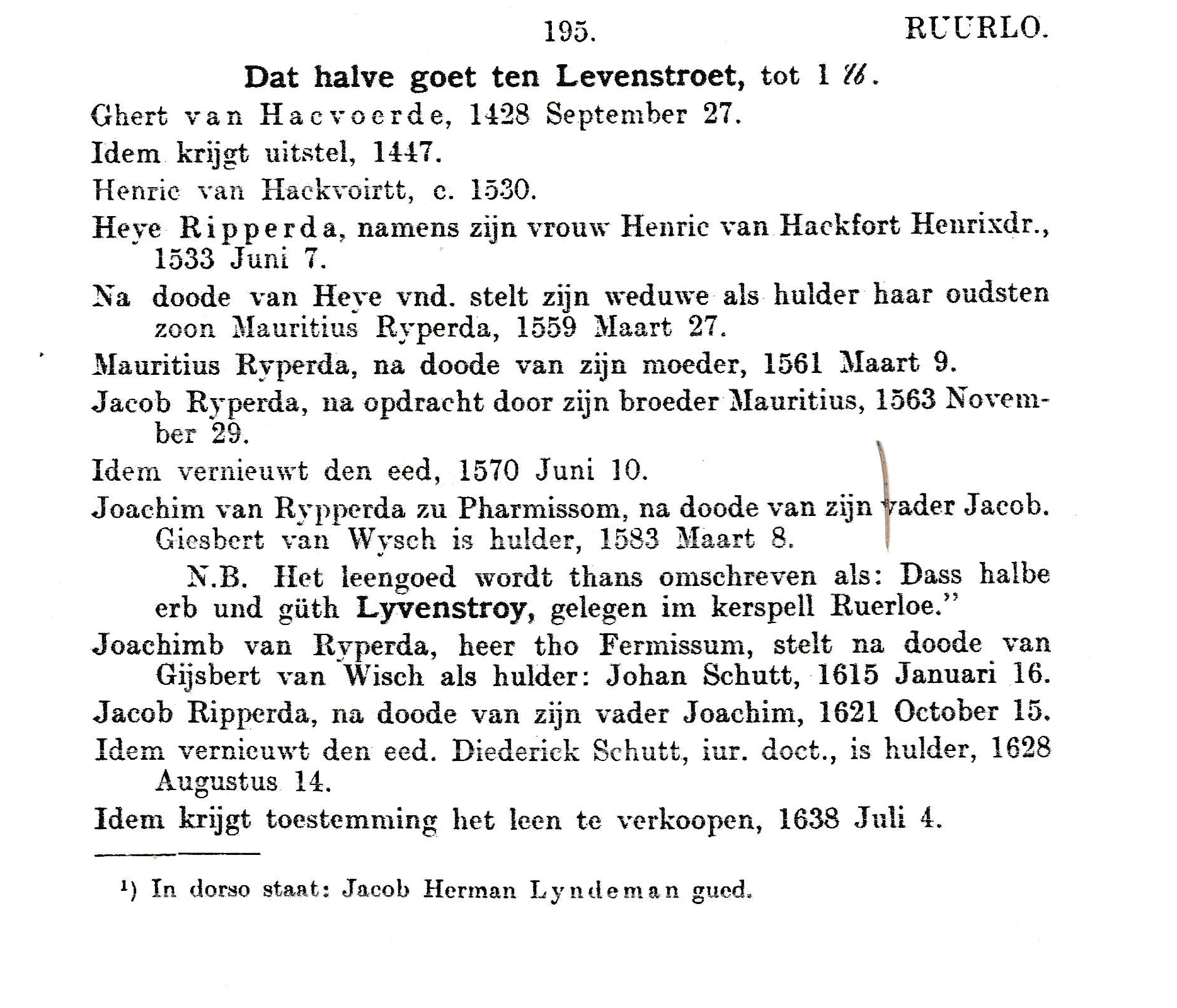 De Erve ten Levenstroet werd reeds vermeld in een akte van 1428 en zou toen gelieerd zijn aan Huis Bergh te’s Heerenberg.